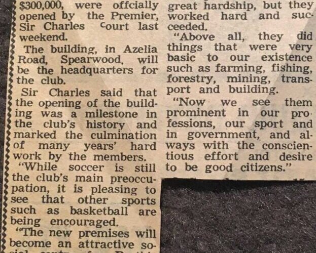 Article by Janet Wainewright, newspaper unknown Opening of the Spearwood Dalmatinac Soccer Club premises 1978, Spearwood Courtesy of Dalmatinac Sport and Community Club
